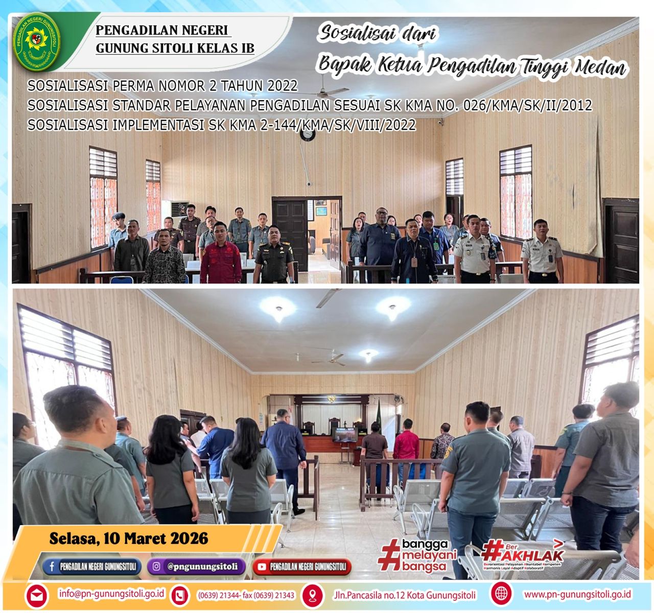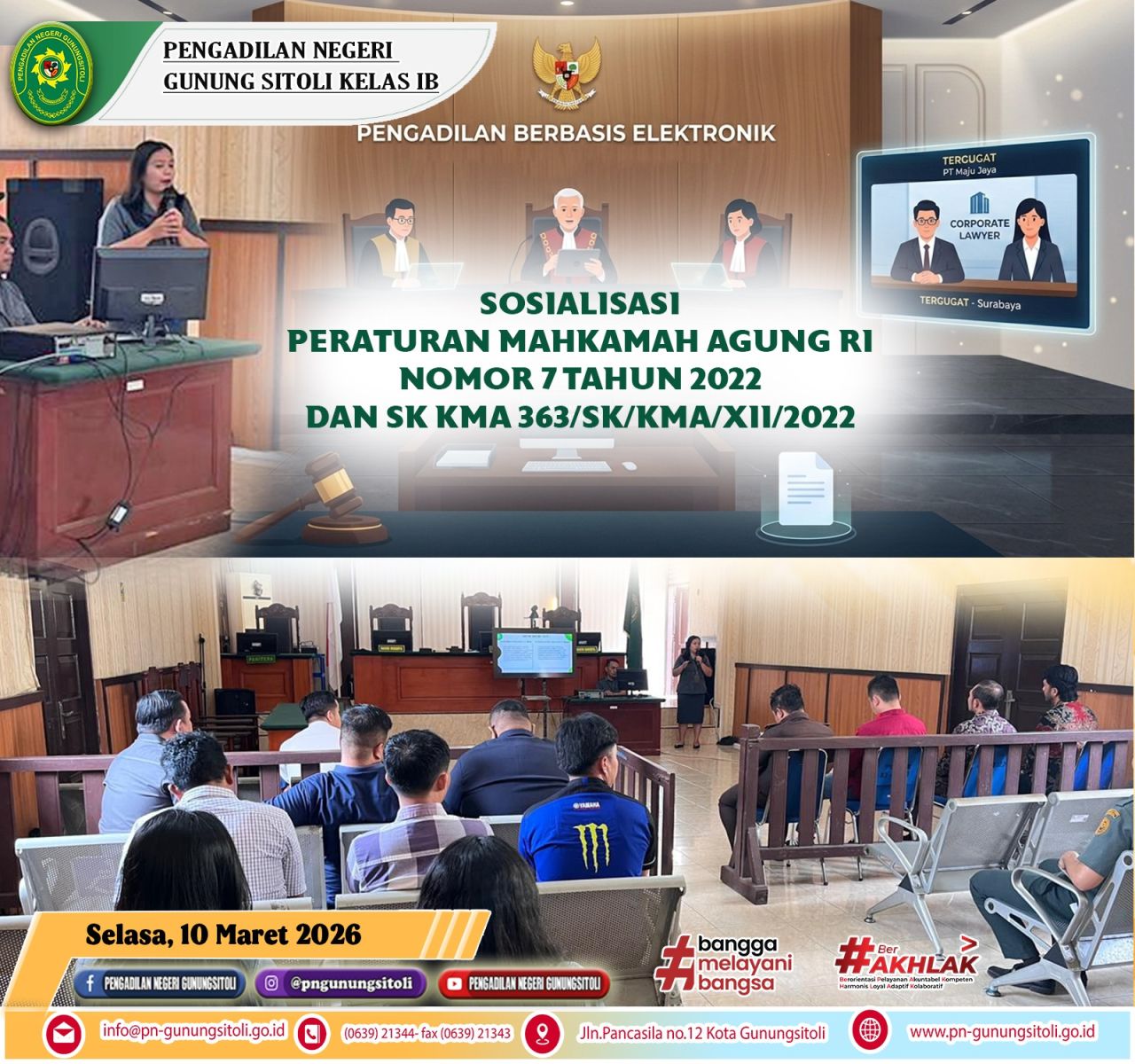 Situs Pengadilan Negeri Gunungsitoli memiliki fitur aksesibilitas sesuai dengan WCAG 2.0 seperti pengatur ukuran font, kontras warna, serta konversi teks ke suara untuk membantu para pencari keadilan khusus difabel dalam mengambil informasi di situs Pengadilan. Fitur AccessKey navigasi keyboard juga ditanamkan di situs ini bagi difabel mandiri.