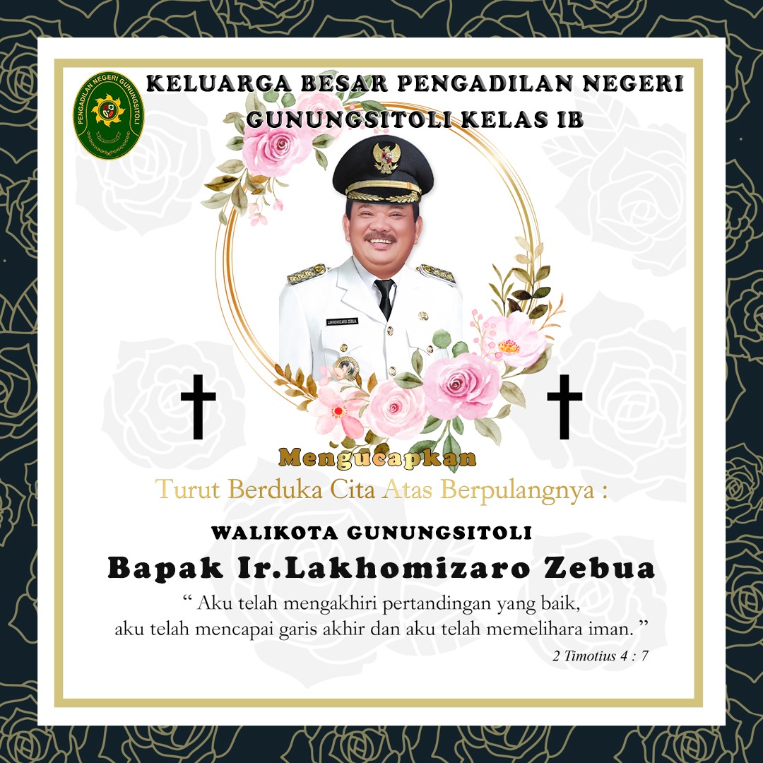 Keluarga Besar Pengadilan Negeri Gunungsitoli mengucapkan Turut Berduka Cita atas meninggalnya Walikota Gunungsitoli Bapak Ir. Lakhomizaro Zebua.