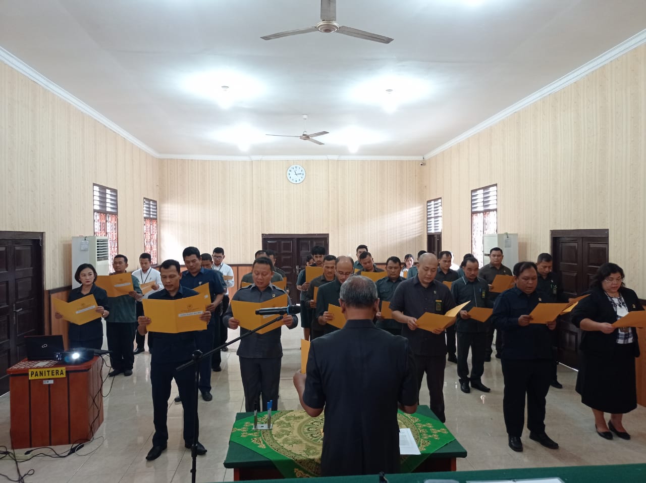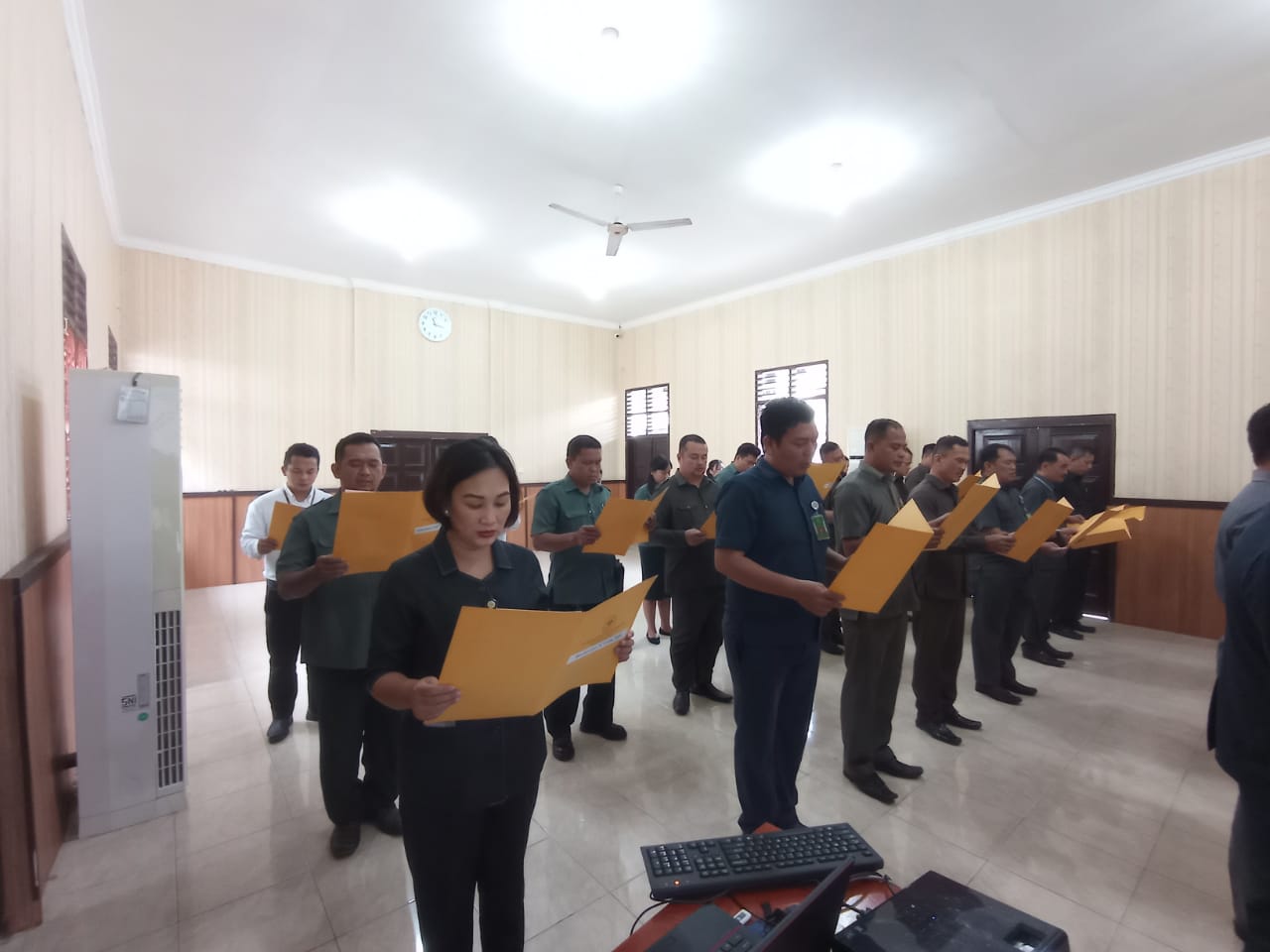 Humas, 5 Oktober 2022. Bertempat di Ruang Sidang Cakra Pengadilan Negeri Gunungsitoli dilaksanakan Pembacaan Pakta Integritas oleh Seluruh Pejabat dan Pegawai di Pengadilan Negeri Gunungsitoli. Acara ini dipimpin langsung oleh Bapak Agus Komarudin, S.H. dan diikuti oleh seluruh ASN. Kegiatan ini berdasarkan SEMA No. 4 Tahun 2022 Tentang Penandatanganan Pakta Integritas.