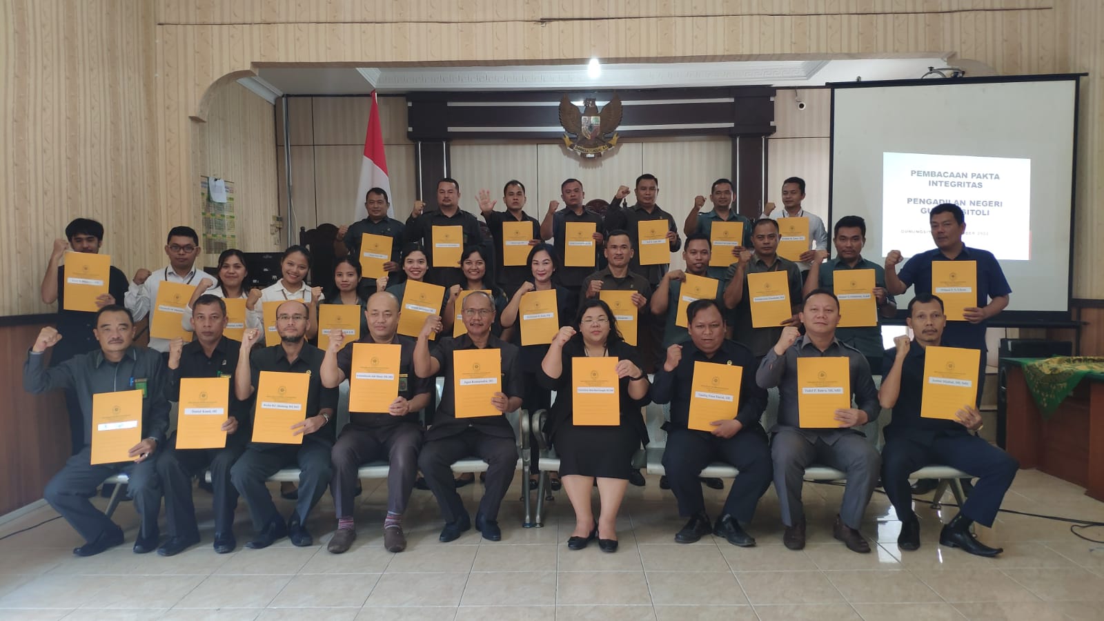 Acara berlangsung dengan baik dari awal sampai dengan akhir. Sebagai pembuka seluruh ASN menyanyikan lagu kebangsaan Indonesia Raya dan diikuti oleh Hymne Mahkamah Agung. Sampai pada kegiatan puncak yaitu Pembacaan Pakta Integritas serta Penandatanganan Pakta Integritas sebagai bentuk komitmen seluruh ASN Pengadilan Negeri Gunungsitoli dalam rangka Penolakan terhadap seluruh kemungkinan adanya korupsi, kolusi, nepotisme dan conflict of intereset.