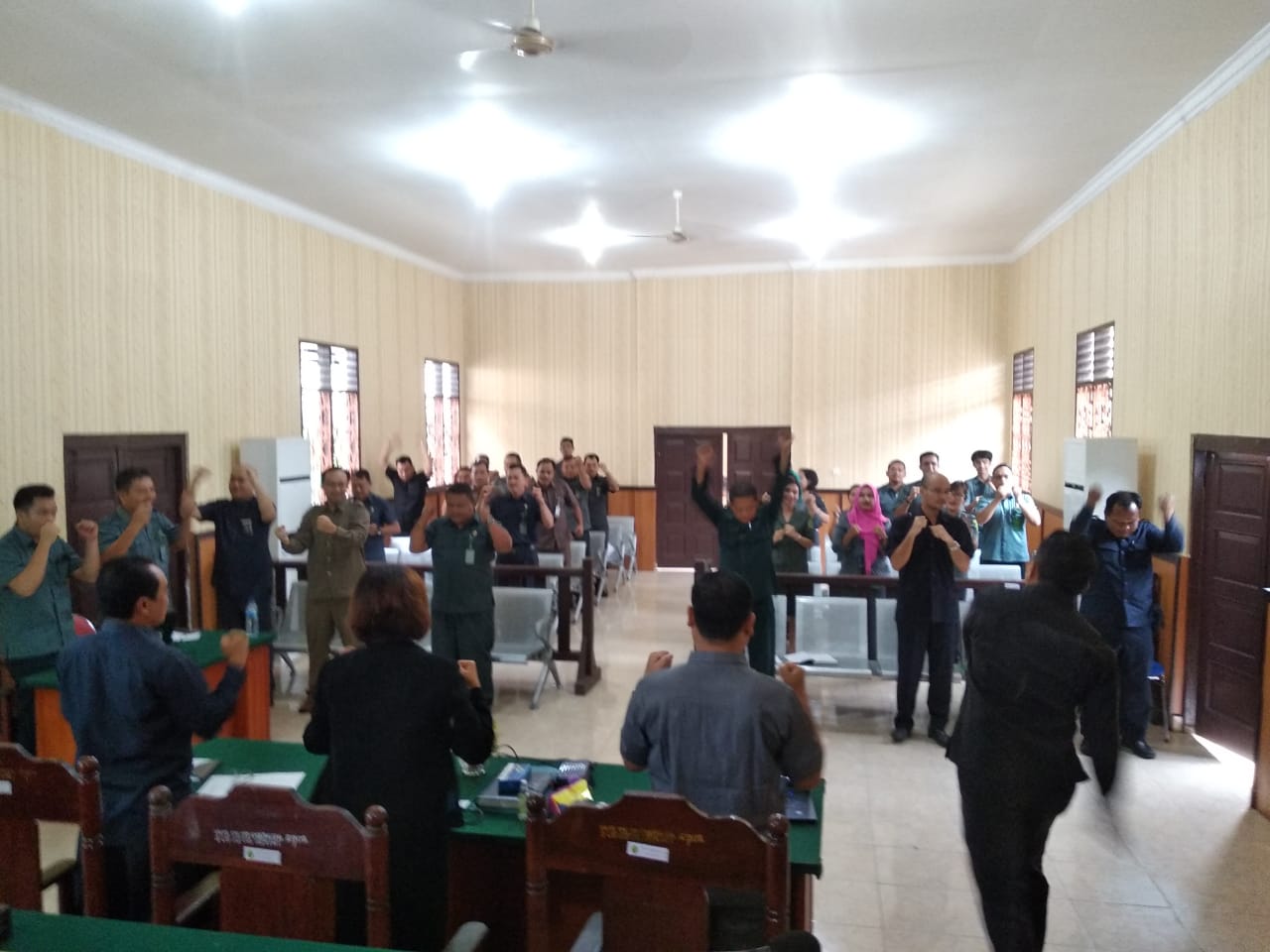 Acara kegiatan rapat bulanan yang dibuka oleh Ketua PN Gunungsitoli dimulai dengan kata sambutan dan disertai menyanyikan yel-yel Pengadilan Negeri Gunungsitoli untuk membangkitkan semangat aparatu Pn Gunungsitoli dalam mengikuti rangkaian kegiatan rapat bulanan.