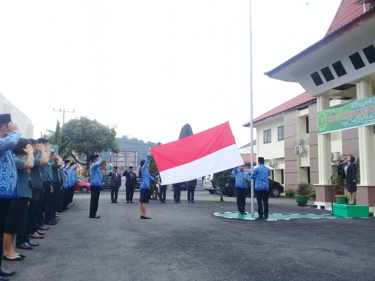 Humas, 11 November 2019 - Tepat pada tanggal 10 November 2019 Negara Indonesia memperingati Hari Pahlawan sebagai bentuk rasa hormat kepada Seluruh Pahlawan yang telah gugur dalam memperjuangkan kemerdekaan bangsa dan negara. Pengadilan Negeri Gunungsitoli sebagai badan peradilan umum ikut serta di dalam peringatan Hari Pahlawan yang ke 74. Upacara Peringatan Hari Pahlawan di laksanakan di Lapangan Pengadilan Negeri Gunungsitoli dan dihadiri oleh seluruh aparatur.