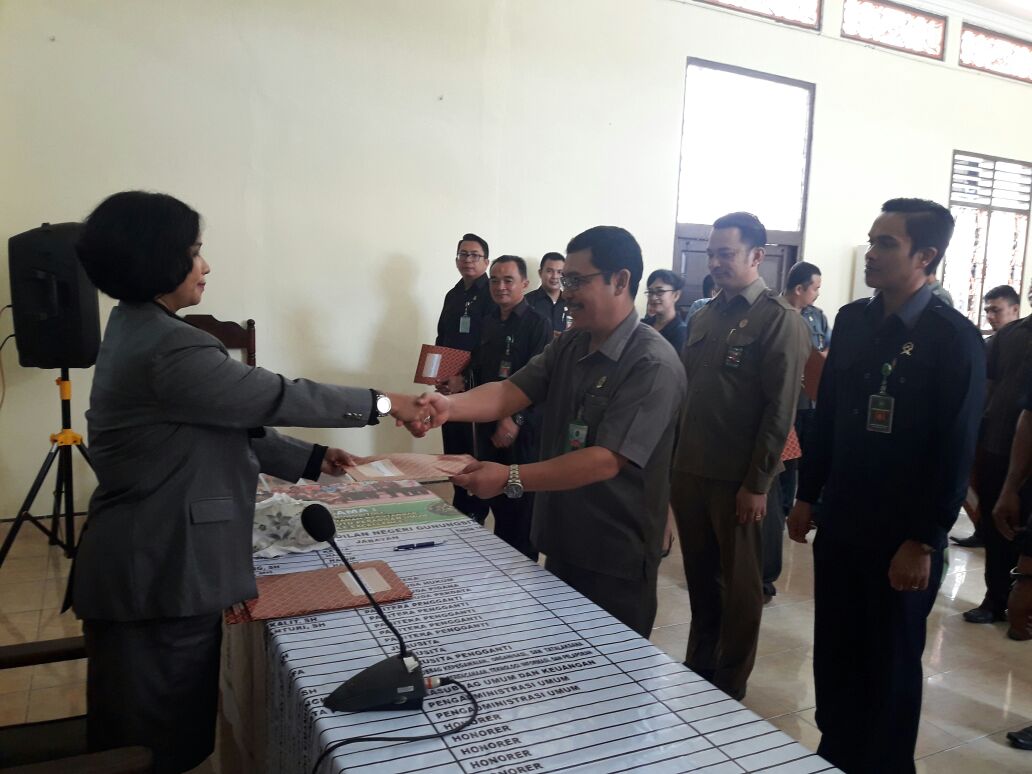 Penandatanganan Pakta Integritas dan Komitmen Bersama Pengadilan Negeri Gunungsitoli Kelas IB Oleh Ketua Pengadilan Negeri Gunungsitoli Bersama Sekretaris dan Para Kasubag di Pengadilan Negeri Gunungsitoli.