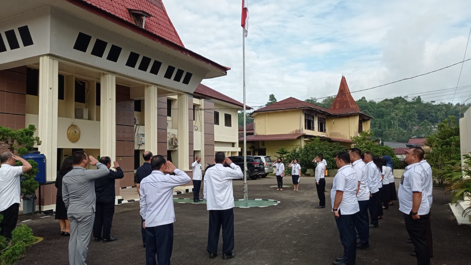Humas, 24 Oktober 2022. Pengadilan Negeri Gunungsitoli melaksanakan apel senin pagi pada tanggal 24 Oktober 2022. Apel dipimpin oleh Ketua Pengadilan Negeri Gunungsitoli Bapak Agus Komarudin, S.H., dan dihadiri oleh 6 hakim, 21 pegawai, dan 9 PPNPN Pengadilan Negeri Gunungsitoli. Dalam amanat, Ketua Pengadilan Negeri Gunungsitoli berpesan agar seluruh pegawai melengkapi dan mempersiapkan seluruh dokumen utuk keperluan akreditasi berhubung akan dilaksanakan pengawasan, dan juga selalu menerapkan kedisiplinan dan selalu menerapkan SOP dalam bekerja.