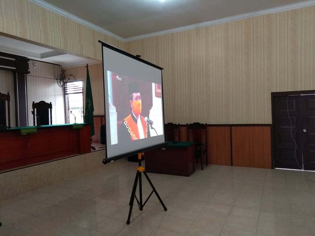 Pengadilan Negeri Gunungsitoli turut berbahagia atas Pelantikan dan Pengucapan Sumpah Yang Mulia Dr. H. Muhammad Syarifuddin S.H.,M.H. sebagai Ketua Mahkamah Agung Periode 2020-2024 dengan harapan kedepan agar Mahkamah Agung dan seluruh jajaran peradilan dibawahnya menjadi lebih baik dan mampu mencapai visi dan misi Mahkamah Agung. Tak lupa, seluruh warga Pengadilan Negeri Gunungsitoli juga memperhatikan protokol penanganan pencegahan Covid-19 saat menyaksikan live streaming tersebut.