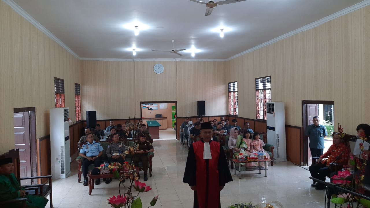Kamis, 19 Maret 2020 - Bertempat di Pengadilan Negeri Gunungsitoli, tepat pada hari kamis tanggal 19 Maret 2020 dilaksanakannya Pengambilan Sumpah Jabatan dan Pelantikan Wakil Ketua Pengadilan Negeri Gunungsitoli, Bapak Agus Komarudon, S.H. Hadir dalam acara tersebut Kepala Lembaga Pemasyarakatan Gunungsitoli, Pejabat dari Polres Gunungsitoli dan Nias Selatan, Serta Para Pejabat dari Kejaksaan Negeri Gunungsitoli dan Nias Selatan. Acara di mulai dengan agenda menyanyikan Lagu Kebangsaaan Indonesia Raya dan Pada Mu Negeri, serta dilanjutkan dengan agenda Pengambilan Sumpah dan Penatikan Wakil Ketua Pengadilan Negeri Gunungsitoli.