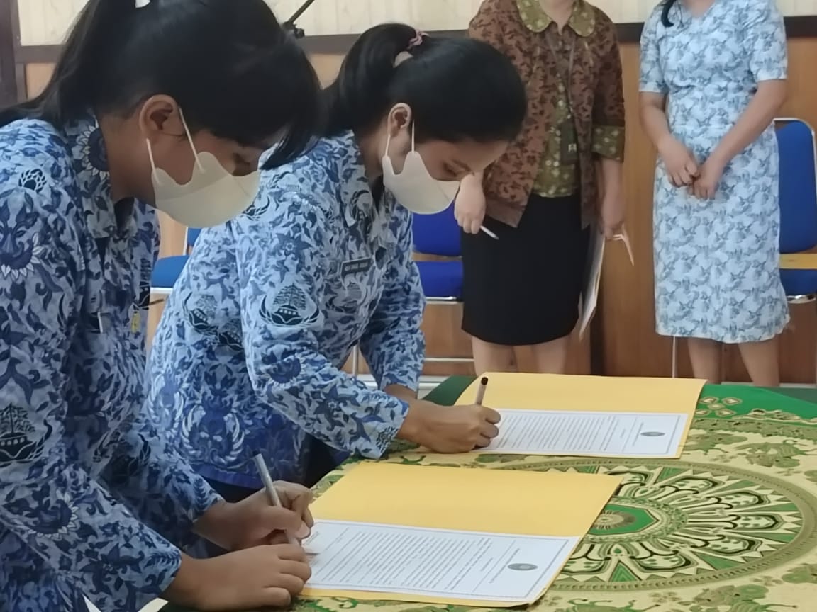 Setelah selesai pengambilan sumpah, dilanjutkan dengan penandatangan Fakta Integritas oleh sdri Melvi Sinaga, A.Md A.B dan sdri Rahel Ovitalia Sianipar A.Md A.B.