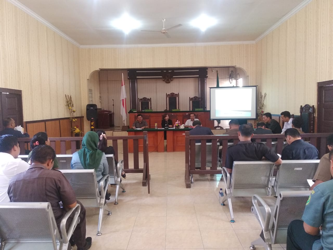 (Kamis, 04 April 2019). Seluruh Aparatur Pengadilan Negeri Gunungsitoli mengadakan acara rapat bulanan di Ruang Sidang Cakra Pengadilan Negeri Gunungsitoli. Kegiatan ini dilaksanakan setiap bulannya sebagai agenda tetap di Pengadilan Negeri Gunungsitoli. Di dalam kegiatan rapat bulanan ini membahas terkait beberapa kendala dan temuan yang sering menyebabkan terjadi perlambatan pelayanan hukum kepada masyarakat pencari keadilan.