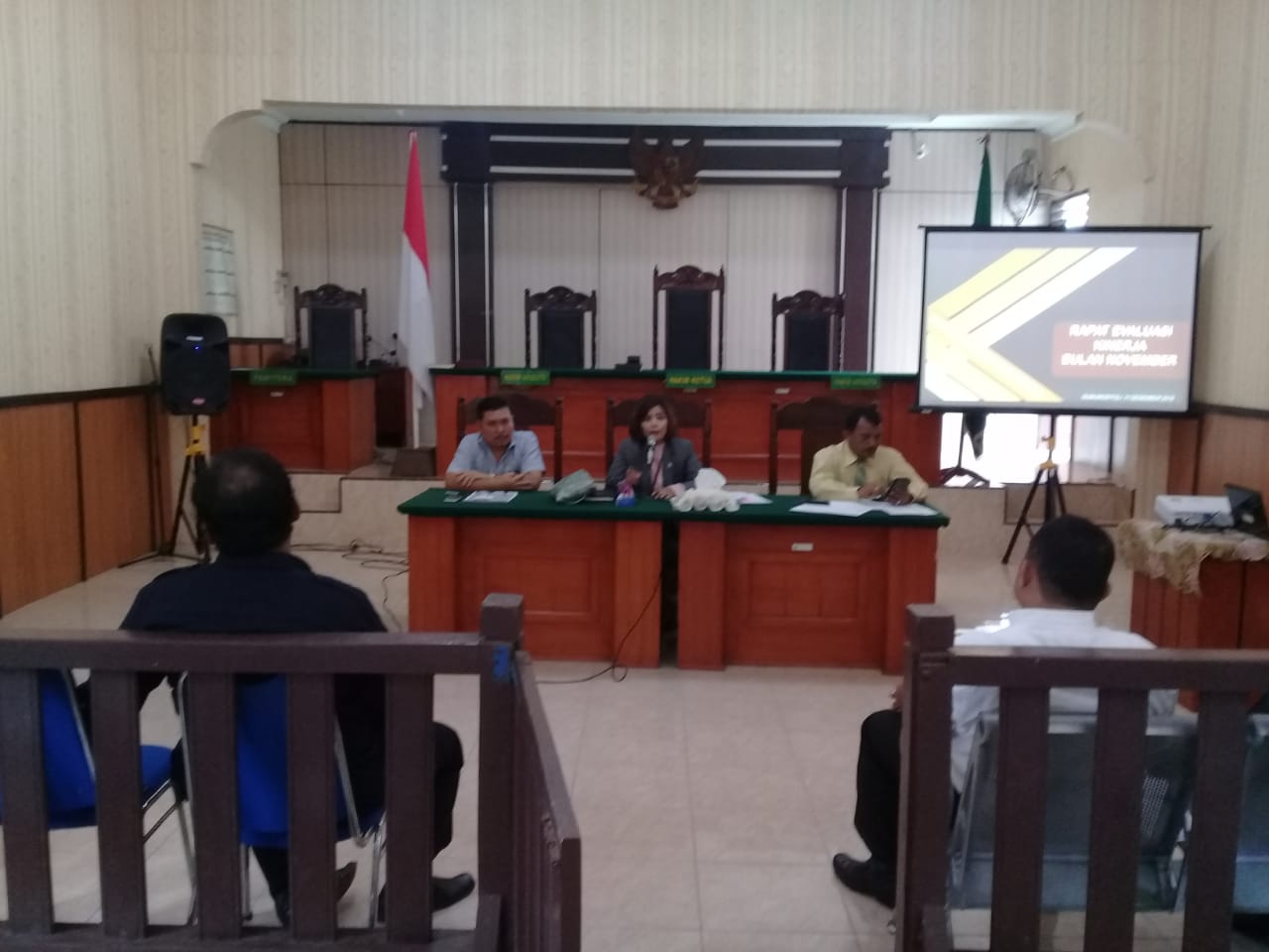 HUMAS (11/12/2019) Pengadilan Negeri Gunungsitoli melakukan Rapat Evaluasi Kinerja Bulan November pada 11 Desember 2019. Kegiatan rutin ini merupakan wujud dari sebuah mutu kerja yang ingin dicapai bersama. Rapat di hadiri oleh Tiga Pilar Pengadilan Negeri Gunungsitoli, demikian Hakim dan seluruh aparatur lainnya. Rapat bulan ini lebih membahas kepada capaian untuk mengejar perkara-perkara yang belum terselesaikan agar dapat selesai sebelum masuk ke tahun yang baru.