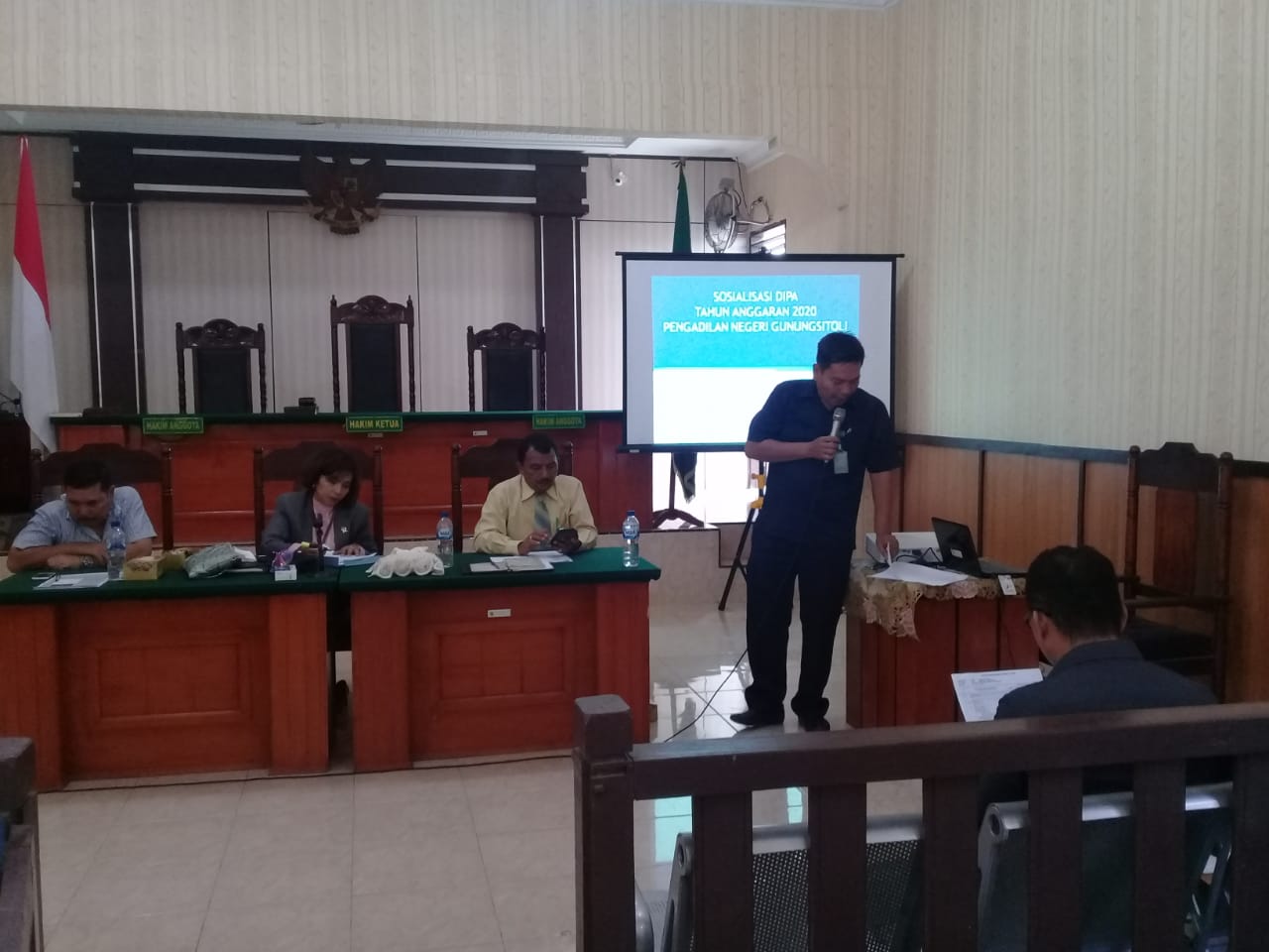Di sela-sela kegiatan rapat, Kepala Sub Bagian Perencanaan, IT dan Pelaporan : Wilpen Fernando Simanungkalit beserta Sekretaris melakukan sosialisasi anggaran DIPA 01. dan DIPA 03 agar dapat dimengerti oleh seluruh aparatur mengenai program kerja yang akan di jalankan sesuai dengan kecukupan anggaran. Dalam sosialiasi ini dilakukan sesi tanya jawab kepada peserta rapat apabila masih ada hal-hal yang perlu dipertanyakan terkait anggaran yang dimiliki PN Gunungsitoli. Terakhir sebagi penutup Sekretaris PN Gunungsitoli mengharapkan agar transparansi anggaran adalah hal yang sangat penting di dalam pelaksanaan pekerjaan kesekretariatan, dan ini sangat diperlu kan untuk menunjukkan bahwa Pengadilan Negeri Gunungsitoli yang merupakan badan peradilan umum, merupakan lembaga yang bersih dari segala tindak penyimpangan korupsi.