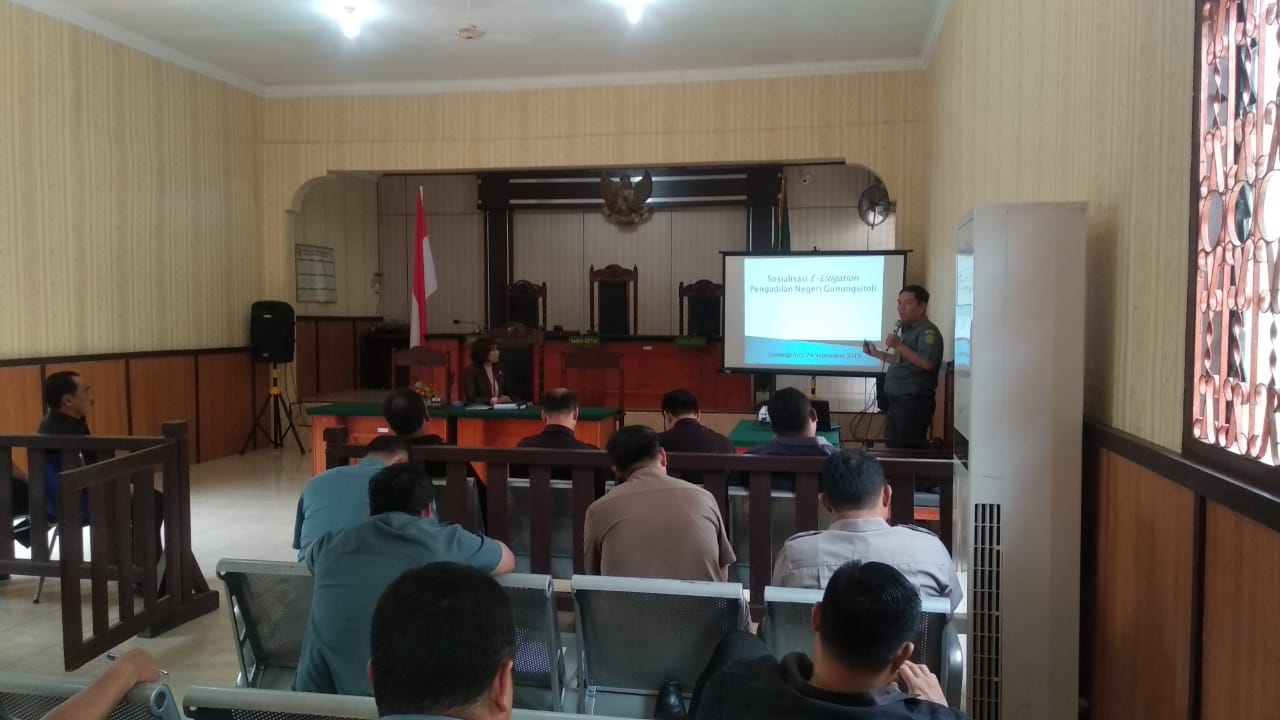 Humas-Selasa, 24 September 2019. Pengadilan Negeri Gunungsitoli melaksanakan kegiatan sosialisasi aplikasi E-litigation kepada seluruh aparatur Pengadilan Negeri Gunungsitoli. Hadir sebagai Narasumber adalah Kepala Sub Bagian Perencanaan, IT dan Pelaporan Pengadilan Negeri Gunungsitoli dan di hadiri juga oleh Ketua Pengadilan Negeri Gunungsitoli, Hakim-Hakim, Panitera dan seluruh staff Pengadilan Negeri Gunungsitoli.