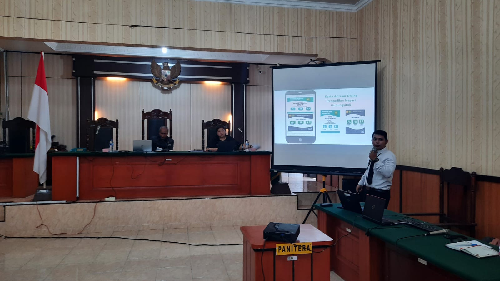 (Gunungsitoli, 25 Oktober 2022) Bertempat diruang sidang utama Pengadilan Negeri Gunungsitoli, CPNS Pengadilan Negeri Gunungsitoli yang berjumlah 4 orang, mensosialiasikan rancangan aktualisasi kepada seluruh aparatur Pengadilan Negeri Gunungsitoli. Dimulai dari saudara Syukur Kasih Lase, S.H. dengan judul aktualisasi "Optimalisasi Pelayanan melalui Penyediaan Fasilitas Pengubah Suara menjadi Teks bagi Tunarunggu pada Ruang Sidang Pengadilan Negeri Gunungsitoli"