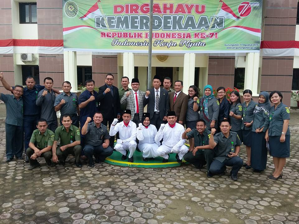 Rabu Tanggal 17 Agustus 2016 , Pengadilan Negeri Gunungsitoli mengadakan upacara Kemerdekaan Republik Indonesia yang ke 71 yang di laksanakan di kantor Pengadilan Negeri Gunungsitoli yang di pimpin oleh wakil ketua Pengadilan Negeri gunungsitoli Bpk Hendra Utama Sotardodo Sipayung, SH, MH selaku Inspektur Upacara.