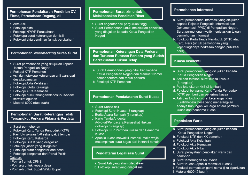 Pelayanan permohonan surat keterangan di Pengadilan Negeri seluruh Republik Indonesia semakin mudah setelah diaplikasikan ke sistem Online dengan nama ERATERANG. Dengan menggunakan HP/Gawai, Laptop dan Komputer/PC pemohon dapat mengajukan permohonanannya dimanapun dia berada selama ada akses internet.